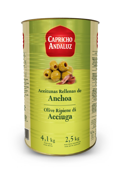 Asegura el éxito en tu barra con las Aceitunas Rellenas de Anchoa Capricho Andaluz. Este aperitivo clásico combina la mejor aceituna verde con un relleno sabroso que nunca pasa de moda.